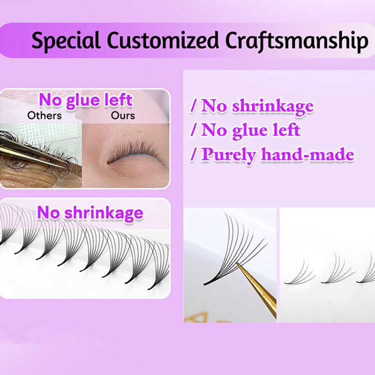 De 12D Pointy Base Premade -fans van dit product hebben dunne wortels die zonder hiaten perfect bij je natuurlijke wimpers passen, waardoor een langere retentietijd wordt gegarandeerd. Zelfs als je een wimperborstel gebruikt om door deze vooraf gemaakte fans te kammen, vallen ze niet af. Het lichtgewicht en comfortabele ontwerp zorgt ervoor dat ze je echte wimpers niet beschadigen.