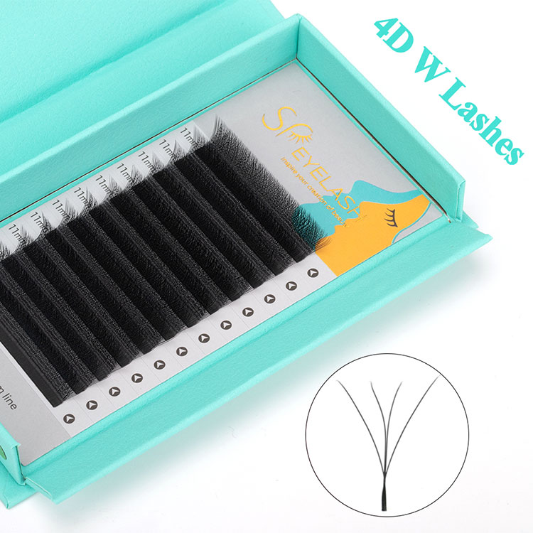 Uniek ontwerp:De wortels van 4 individuele wimperextensions zijn in een W-vorm met elkaar verbonden, waardoor het gemakkelijk is om met een pincet waaiers te creëren en snel 4D-clusters te vormen.