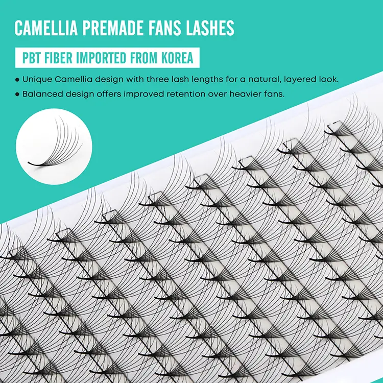 Gemaakt van de Zuid-Koreaanse PBT-X-vezel van medische kwaliteit, hebben de Camellia 8D Promade-fans wimpers door de Seoul National University Medical School getest. 98% van de personen van gevoelige huid meldde geen ongemak na het dragen van 12 uur. Nadat ze ze in "Lash Atelier", een high-end salon in het Ginza-district Tokyo, hebben geïntroduceerd, zei Japanse klanten (Feedback): "Het is alsof je een tweede laag van mijn eigen lassen groeit-ik kan ze helemaal niet voelen." Ze wegen slechts 1/3 van traditionele wimpers en zijn comfortabel voor gevoelige ogen.