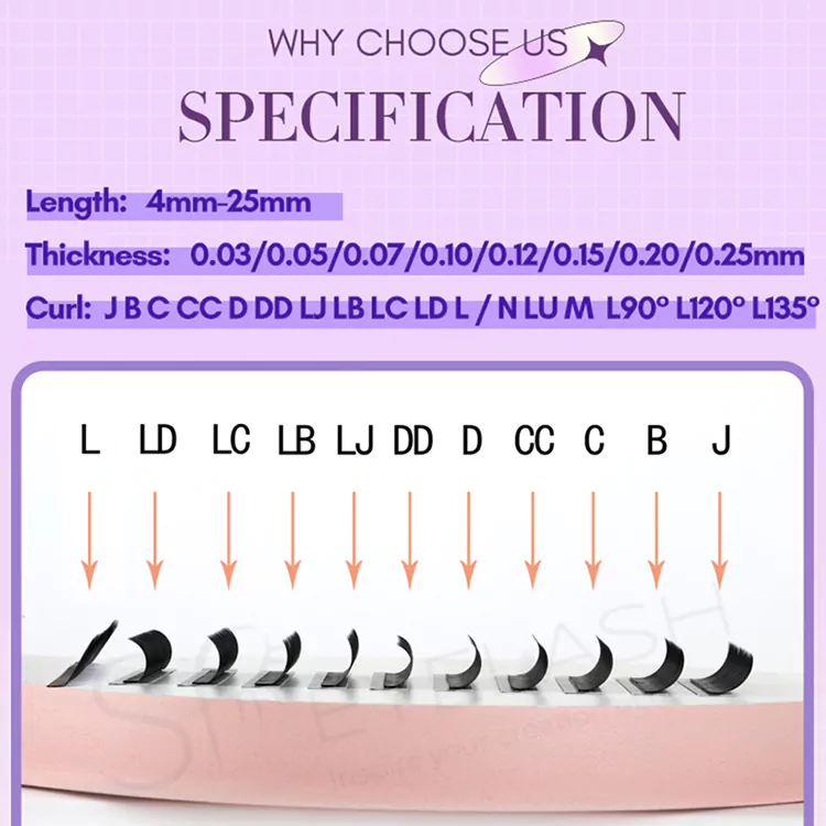 ● Curling -vorm: J, B, C, CC, D, DD, L, M krullen, ondersteunende natuurlijke lichte krullen naar overdreven fase -make -upeffecten