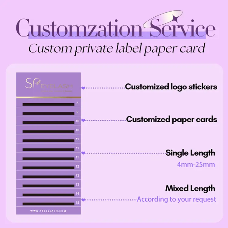 Verkrijgbaar in acht dikte niveaus variërend van 0,03-0,25 mm, gecombineerd met J/B/C/CC/D/L/M/LM Acht soorten curlingradius-combinaties. Het speciale oogcurveontwerp gecombineerd met biomimetische textuurvezels voldoet aan de volledige scène -stylingbehoeften van dagelijkse kale make -up tot banket zware make -up.