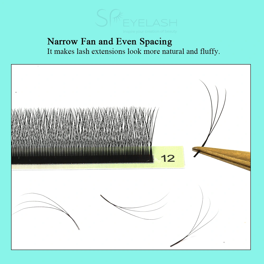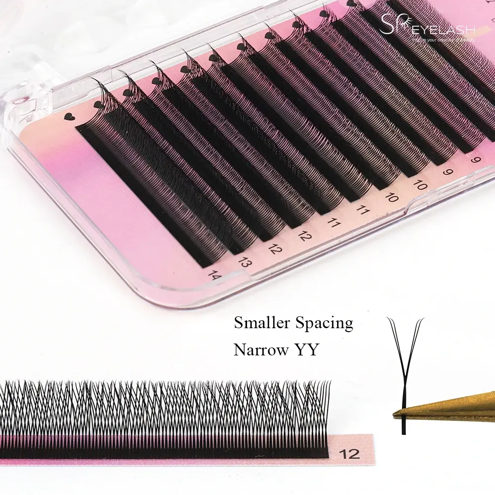 In vergelijking met traditionele YY-vormige wimpers, hebben onze verbeterde smalle YY-wimperuitbreidingen een kleinere opening en soepelere lijnen, waardoor een naadloos verbonden en meer volumineus wimperseffect ontstaat. De compacte opstelling vermindert de hiaten tussen wimpers, waardoor een natuurlijke maar dramatische volheid ontstaat. De wimpersopstelling met een hogere dichtheid vormt diepere en vollere wimperlijnen, terwijl het smallere fanontwerp zorgt voor een netter en meer gelijkmatig uiterlijk. Ondertussen creëert de kleinere fanbase in combinatie met een uitgebreide wimperband een groter bindingsgebied, waardoor de hechting en duurzaamheid wordt verbeterd en de puinhoop en oneffenheden wordt vermeden die kan optreden met brede W-vormige wimpers.