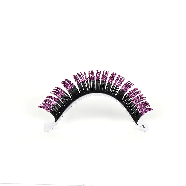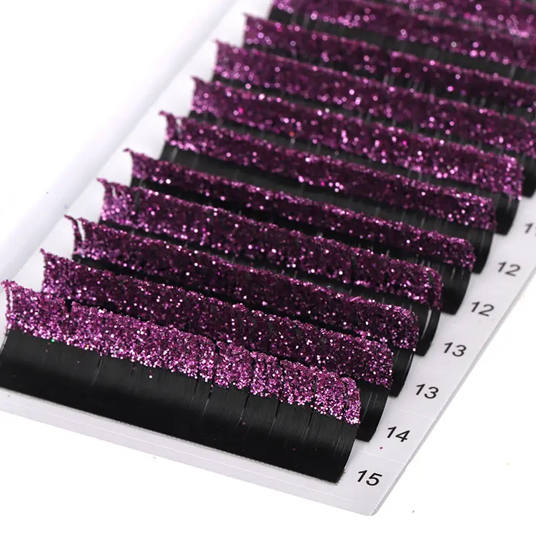 De Purple Glitter Lashes Extension bevat cosmetische grade glitter met hoge dichtheid, het branden van dromerige paars licht onder verlichting. Of het nu een straatshoot in de zon is of een close-up op het podium, het zal zeker de focus worden.